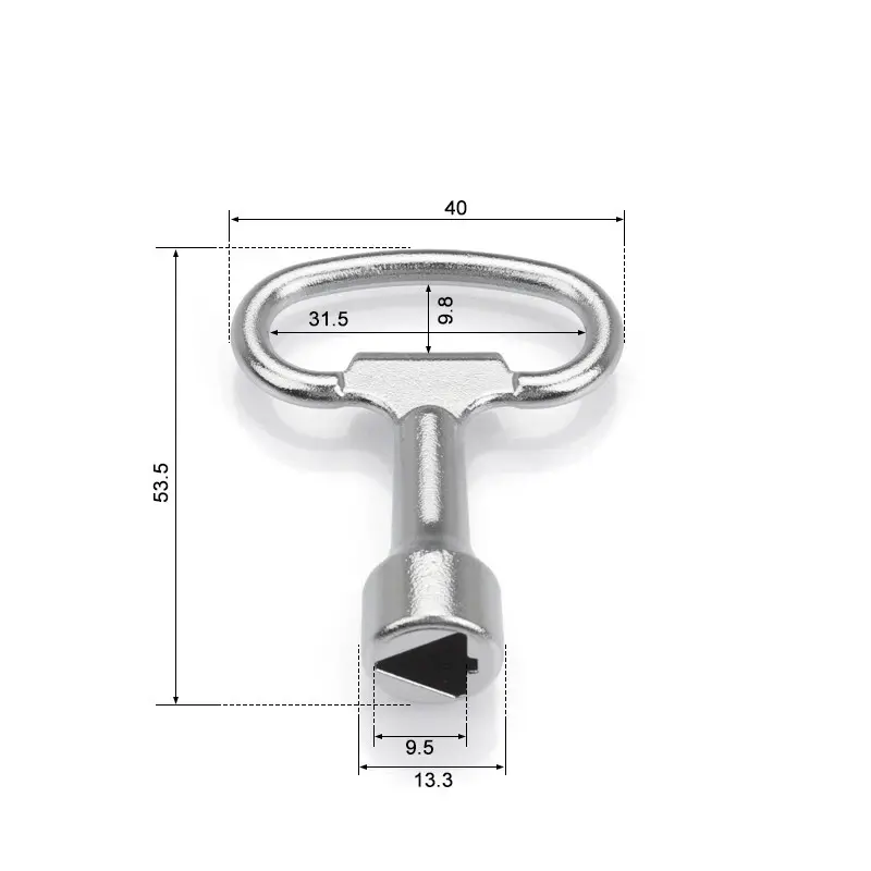 Tombol segitiga wesi Zink iki dirancang kanggo ngoperasikake kunci kunci segi telu kanthi cara sing gampang lan trep. Iki cocog kanggo nggunakake saben dina lan menehi fungsi kunci kunci dhasar.